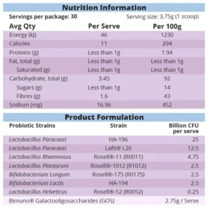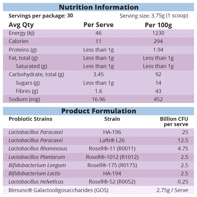 Tasteless Probiotics + Prebiotics is a scientifically formulated blend that offers a huge probiotic count of 50 billion CFU per serve combined with prebiotics – making it a complete gut health solution!